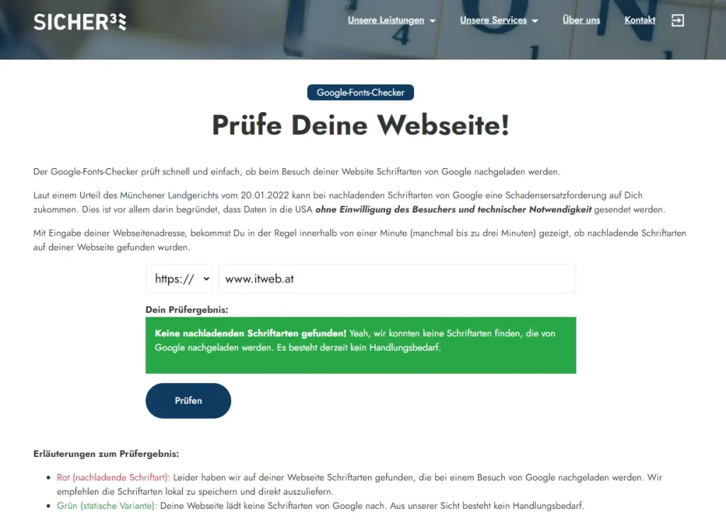 Die WKO hat dafür einen Google-Fonts-Checker empfohlen.